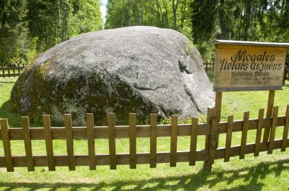 Vislielākais laukakmens Latvijā. Akmens izmēri: garums – 10,5m, platums – 10,4m, augstums – 3,5m, apkārtmērs – 31,1m, virszemes tilpums – 170m³.