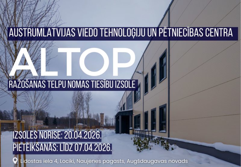 Izsludināta “ALTOP” industriālā parka jaunizbūvēto ražošanas telpu nomas izsole