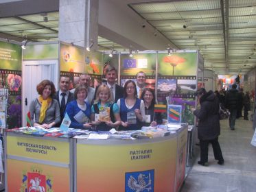 Latgales reģiona, Utenas apriņķa un Vitebskas reģiona tūrisma informācijas centru speciālisti piedalījās izstādē Latvijas, Lietuvas un Baltkrievijas pārrobežu sadarbības programmas projekta Nr. LLB-1-098 “Tūrisma attīstības veicināšana Latgales-Utenas-Vitebskas pārrobežu reģionos” (BELLA DVINA 2) ietvaros. Projekta kopējais budžets ir 1 789 387 EUR. No šīs summas 90% – 1 610 448,30 EUR (1 131 887,40 LVL) ir Eiropas kaimiņattiecību un partnerības instrumenta Latvijas, Lietuvas un Baltkrievijas pārrobežu sadarbības programmas atbalsts. Par šī dokumenta saturu atbild Latgales plānošanas reģions, un tas nevar tikt uzskatīts par Eiropas Savienības oficiālo viedokli.