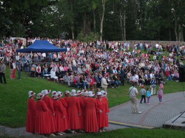 Notikumiem, emocijām un jauniem iespaidiem pārpilna, svētku diena noslēdzās pilsētas estrādē. Vakara pasākumu apmeklēja tūkstošiem apmeklētāju. Izskanēja jau trešais svētku koncerts, skanēja daudz labu vārdu un novēlējumu pilsētai. Uzstājās krāslavieši, kas no sirds dejoja, dziedāja un muzicēja. Atkal uz skatuves kāpa viesi no Lietuvas un Baltkrievijas. Applausi nebeidza skanēt. Sajūsmas pavadīts, kā uguns puķes debesīs traucās svētku salūts. Svētki noslēdzās ar jautru zaļumballi. Tūkstošiem apmeklētāju ļāvās mūzikas ritmiem un Krāslavas estrāde pārvērtās milzīgā deju placi, kas pletās līdz pat pils pagalmam.