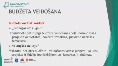 - Projekta naudas plūsmas, budžeta plānošana un kontroles procedūras;