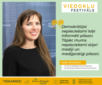 Viedokļu festivālā piedalījās dažādu nozaru eksperti. Latvijas lauksaimniecības universitātes docents, filozofs Juris Vuguls aicināja uz sarunu par tēmu “Kas r viedoklis?”. Aktīvo iedzīvotāju fonda vadītājs Ansis Bērziņš runāja par kopienu līdzdalības svarīgumu un atgādināja, ka jau 1. oktobrī mēs visi kopā varam paveikt vienu svarīgu darbiņu – iet uz vēlēšanu iecirkņiem un nobalsot par mūsu nākamo Saeimu. Eiropas Kustības Latvijā ģenerālsekretāre Liene Valdmane diskutēja par tēmu “Es Eiropā”. Savukārt Valsts Kancelejas Stratēģiskās komunikācijas koordinācijas departamenta konsultante Nora Biteniece aktualizēja medijpratības tēmu un uzsvēra, ka ir ļoti svarīgi iemācīt cilvēkiem atpazīt maldinošu informāciju. Kā maldinoša satura piemērus viņa minēja bieži sastopamās pseidozinātniskās publikācijas, kas jo īpaši izplatījās līdz ar Covid pandēmiju, kā arī dažādas sazvērestības teorijas un propaganda, kas ļoti apelē pie cilvēku emocijām. “Maldinoša informācija var izplatīties ne tikai teksta, bet ari kā foto vai video. Konstruēt realitāti var, izvēloties rakursu, no kura, piemēram, fotografēt ugunskuru Parīzē protestu laikā. Var nofotografēt tā, ka visa Parīze izskatās liesmu apņemta, vai arī no augšas, kur var redzēt, ka ugunskurs ir ļoti neliels.” Ja iepriekš mediju speciālisti aicināja sabiedrību izvērtēt informācijas avotu un meklēt līdzīgu informāciju citos avotos, tagad aicina izvērtēt, ka šī informācija liek tās patērētajam justies, analizē izraisītās emocijas. “Biezi vien maldinoša informācija spēle uz emocijām, grib izraisīt konkrētas emocijas, lai cilvēks izslēdz savu racionālo prātu, nedomā, notic un dalās tālāk,” saka Nora Biteniece. Pārbaudīt savu medijpratību un nostiprināt teorētiskās zināšanas ikviens varēja viedokļu kafejnīcā “Medijpratība?”, kur LTV žurnālists Ēvalds Dukulis un Latvijas Radio Latgales studijas vadītāja Renāte Lazdiņa piedāvāja interaktīvu nodarbi, aicinot klātesošos atpazīt viltus ziņas un izteikt viedokli par savu izvēli.