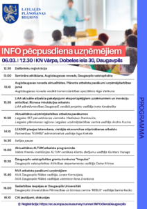 2026. gada 6. martā plkst. 12.30 KN “Vārpa”, Dobeles ielā 30, Daugavpilī notiks “INFO pēcpusdiena uzņēmējiem”, ko rīko Latgales plānošanas ...