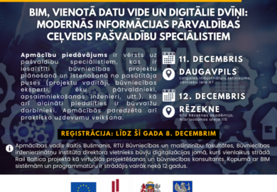 Aicinām uz apmācībām “BIM, vienotā datu vide un digitālie dvīņi: modernās informācijas pārvaldības ceļvedis pašvaldību speciālistiem”