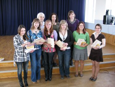 Zane Bukša – Baļtinovys v-šk. – šk. Anita Ločmele (Zane sajieme ari Latgolys Studentu centra simpateju bolvu)