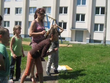 19.jūnijā Sociālās mājas pagalmā Šaurā ielā 28 vasaras sociālās rehabilitācijas programmas “Būsim aktīvi, veseli un laimīgi!” ietvaros notika bērnu sporta sacensības “Jautras stafetes”, kurās organizēja sociālais pedagogs Ludmila Pildika.