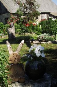 VIJA REINHOLDE dzīvo šosejas Līvāni – Preiļi malā, mājā, kuras dārzu rotā te milzīgi salmu zaķi, te dinozauri. Tos var aplūkot ikviens, kas brauc garām. Šovasar uzmanību piesaista milzīgas baravikas, kas izgatavotas no koka. Naturālā saimniekošana pieprasa būt vispusīgiem – ir gan govis, gan cūkas, gan kazas, gan aitas. Komisijas iepazīstas ar pieradinātu aitu, kurai dots vārds „Bārbija”. Saimniece rāda, kas dārzā papildināts un piebilsts, ka darāmā vēl ir daudz.