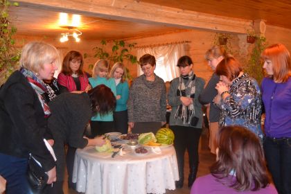 2013. gada 29.novembrī viesu mājā “Mežinieku mājas” Aglonas novadā, Latvijas – Lietuvas – Baltkrievijas pārrobežu sadarbības programmas projekta Nr. LLB-2-266 “Kulināro pakalpojumu uzlabošana Latgales un Vitebskas reģionos, pamatojoties uz kulinārā mantojuma koncepciju” (BELLA CUISINE) ietvaros notika seminārs “Kulinārā mantojuma ēdieni, receptes, ēdienu noformējuma un pasniegšana”. Apmācību laikā projekta mērķauditorija, Latgales kulinārā mantojuma tīkla darbībā iesaistījušies dalībnieki – esošie un jaunie uzņēmēji (restorāni, kafejnīcas, viesu mājas, lauku mājas, mājražotāji) noklausījās „Mežinieku mājas” saimnieces Marijas – Lilijas Mežinieces lekciju par Latgales kulinārā mantojuma ēdieniem un to receptēm. Tālāk klātesošie piedalījās maizes cepšanas procesā „Maizes namiņā”, kur katram semināra dalībniekam bija iespēja izveidot savu mazo maizes kukulīti un vēlāk, kad maizīte tika izcepta, paņemt to līdzi uz mājam un pacienāt ar to savus radus un draugus.Apmācību semināra dalībnieki iepazinās ar Aukštaitijas reģiona (Lietuva) kulinārā mantojuma tīkla darbību Eiropas kulinārā mantojuma tīklā. Viņiem tika piedāvāta vienreizēja iespēja pamēģināt sevī karvingā, tas ir praktiski piedaloties no augļiem un dārzeņiem dekorējumu veidošanā. Šo praktisko iemaņu pasniedzēja bija Aukštaitijas reģiona kulinārā mantojuma tīkla koordinatore un Utenas augstākās mācību iestādes tūrisma un viesmīlības vadības katedras vadītāja, docente Anastasija Vasiļjeva, kura atraktīvi un interesanti dalījās savā teorētiskajā pieredzē un daudz radīja praktiski kā tiek veidoti visdažādākie dekorējumi no augļiem un dārzeņiem.