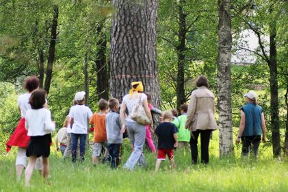Izziņas takā visi varēja iepazīt mežu: mērījām dižpriedes resnumu (dažs metros, dažs – cilvēkbērnos), taustījām sveķenes sveķainumu un gobas lapu asumu, iemācījāmies pazīt indīgās čūskogas, kumeļpēdas un zalktenes, apbrīnojām jaunu eglīti satrupējušā celmā un dzeņa kalvi priedē, skaidrojām kā atšķirt parasto ozolu no sarkanā.