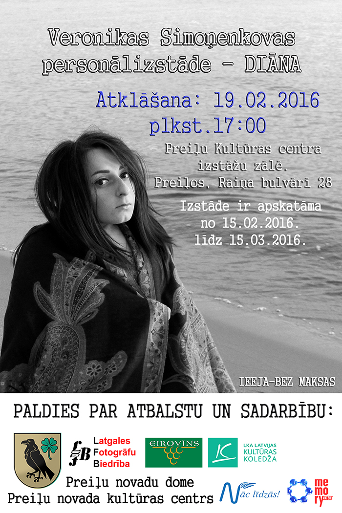 2016.gadā 19. februārī plkst. 17.00 Preiļu Kultūras centra izstāžu zālē tiks atklāta Veronikas Simoņenkovas personālizstāde – “Diāna”. Fotogrāfijās varēs ieraudzīt meitenes ikdienas dzīvi un pārvietošanas grūtības, ar kurām viņai nākas saskarties. Katra bilde ir kā stāsts, kuru papildina meitenes personīgās sajūtas un pārdzīvojumi par katru notikumu.