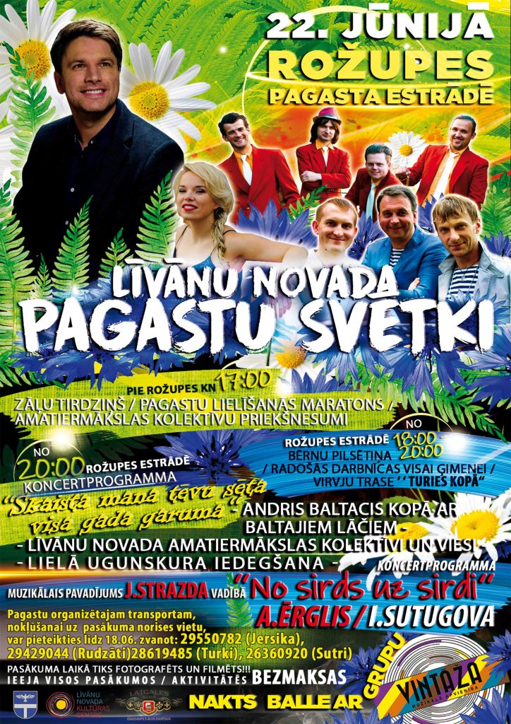 Līvānu novada Rožupes estrādē, 2018.gada 22. jūnijā no plkst. 17:00, ar plašu programmu tiks svinēti pirmie novada pagastu svētki.
