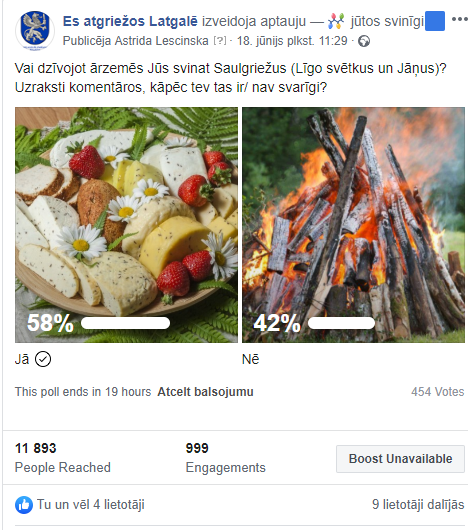 8. Vai dzīvojot ārzemēs Jūs svinat Saulgriežus (Līgo svētkus un Jāņus)? Uzraksti komentāros, kāpēc tev tas ir/ nav svarīgi?
