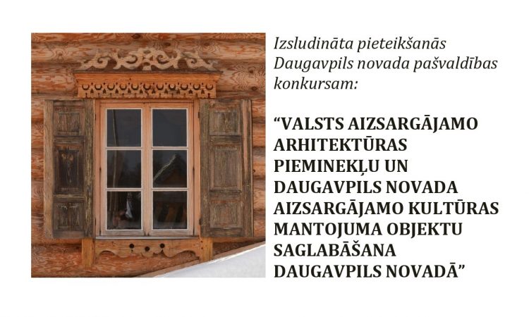 Pamatojoties uz Daugavpils novada pašvaldības 2018. gada 28.jūnijā pieņemtajiem saistošajiem noteikumiem Nr. 23, Daugavpils novada dome izsludina konkursu: „Valsts aizsargājamo arhitektūras pieminekļu un Daugavpils novada aizsargājamo kultūras mantojuma objektu saglabāšana Daugavpils novadā” (turpmāk – konkurss).