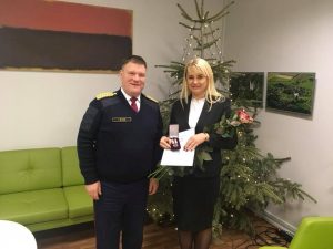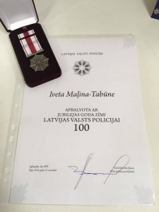 Latgales plānošanas reģiona administrācijas vadītāja Iveta Maļina-Tabūne saņem jubilejas goda zīmi Latvijas Valsts Policijai 100