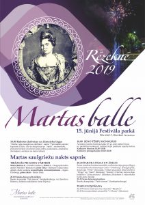 15.jūnijā Rēzeknē, Festivāla parkā (Pils ielā 17), no plkst. 18.00 posīsimies Martas ballei, kas ar košu un teatrālu koncertprogrammu “Martas saulgriežu nakts sapnis” sāksies plkst. 20.00 un pārvērtīs Festivāla parku par greznu balles laukumu.