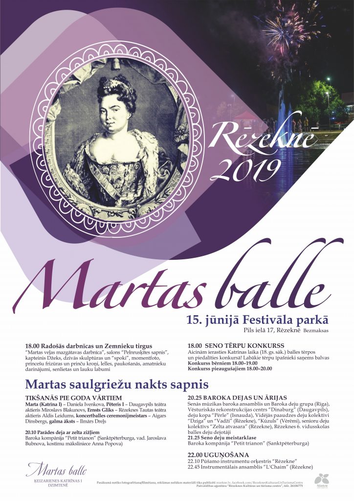 Rēzeknē šogad noritēs Martas balle, kas veltīta Latgales novadniecei Martai Skavronskai (1684—1727), kurai liktenis bija lēmis kļūt par cara Pētera I sievu un Krievijas impērijas ķeizarieni Katrīnu I (Екатерина I Алексеевна Михайлова). Marta Skavronska agri zaudēja vecākus, pusaudzes gados kā vienkāršu lauku meiteni tēvocis viņu nosūtīja kalpot un mācīties pie luterāņu mācītāja Ernsta Glika Alūksnē, kurš kļuva viņai gluži kā audžutēvs. Vēlāk Martas dzīves līkloči vijās gan pie zviedru kavalērista, gan krievu karavadoņiem, līdz kādā ballē Martu pamanīja cars Pēteris I.