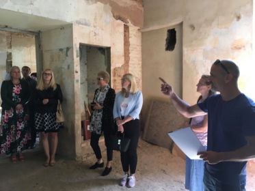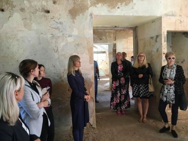 Semināra dalībniekiem bija iespēja arī palūkoties uz atjaunojamās Preiļu pils krāšņajiem atjaunotajiem elementiem un projekta koordinatore Sanda Čingule-Vinogradova kopā ar galveno būvnieku pārstāvi Egilu Stikānu pastāstīja, kā norit darbi projektā “Rīteiropas vērtības” (Preiļu pils 2.kārta), kas tiek ieviests SAM 5.5.1. ietvaros.