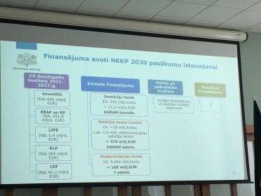 2019. gada 4. septembrī Latgales plānošanas reģions sadarbībā ar Preiļu novada domi Preiļos rīkoja semināru reģiona pašvaldību speciālistiem, kuru ikdienas darbs ir attīstības plānošana un projektu ieviešana. Tikšanās pirmajā daļā Ekonomikas ministrijas Ilgtspējīgas enerģētikas politikas departamenta direktors Andrejs Apaņuks un vecākā eksperte Helēna Rimša iepazīstināja ar “Nacionālo enerģētikas un klimata plānu 2030.gadam” (tas pieejams www.em.gov.lv ). Plāns ir Latvijas politikas plānošanas dokuments enerģētikas un klimata ilgtermiņa mērķu un to izpildes pasākumu noteikšanai, kā arī priekšnosacījums Eiropas Savienības fondu saņemšanai no 2020.gada 1.janvāra un Eiropas Savienības fondu pārdales mehānisms enerģētikas un klimata jomā 2021.-2027.g. finansēšanas periodam. Prezentācija par plāna projektu: