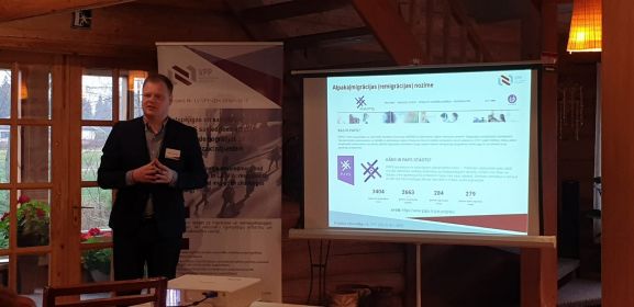 Valsts pētījumu programmas “Latvijas mantojums un nākotnes izaicinājumi valsts ilgtspējai” projekta “DemoMig” vadītāja profesore Zaiga Krišjāne pasākuma apmeklētājus iepazīstināja ar projektu, tā uzdevumiem, iesaistītajām pusēm, rezultatīvajiem rādītājiem un citu informāciju.