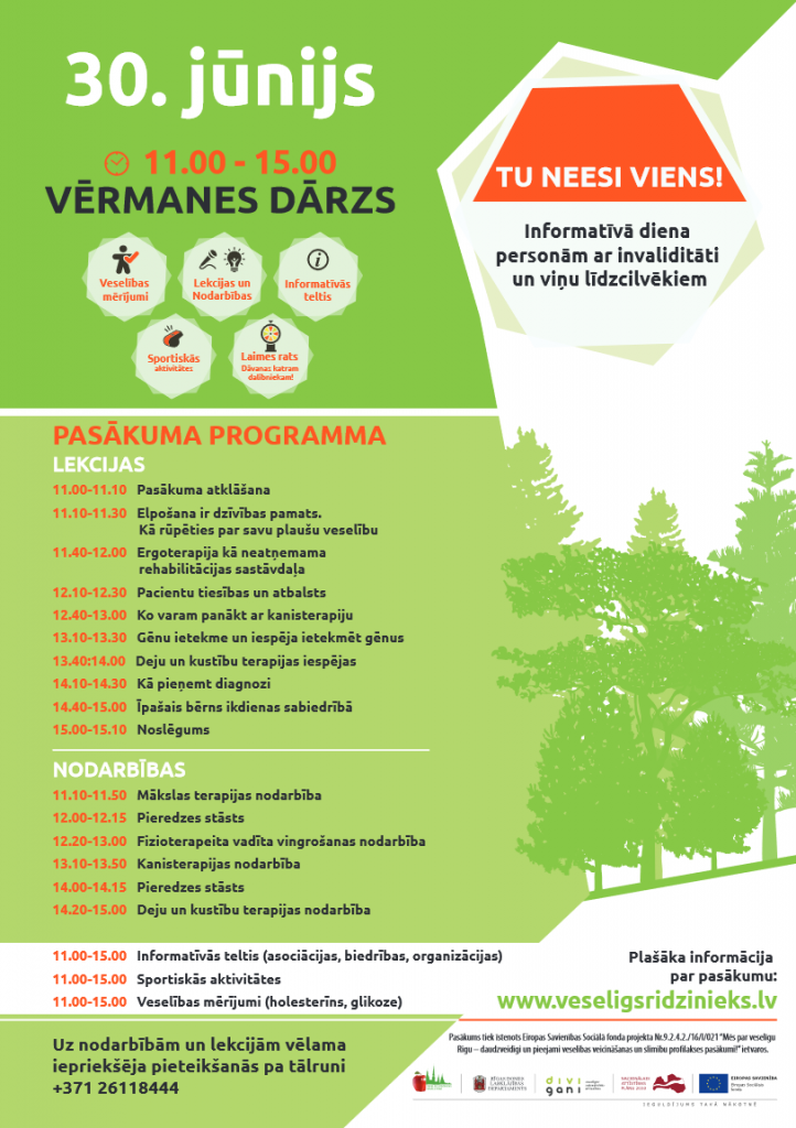 Pasākums tiek īstenots Eiropas Savienības Sociālā fonda projekta Nr.9.2.4.2./16/I/021 “Mēs par veselīgu Rīgu – daudzveidīgi un pieejami veselības veicināšanas un slimību profilakses pasākumi!” ietvaros.