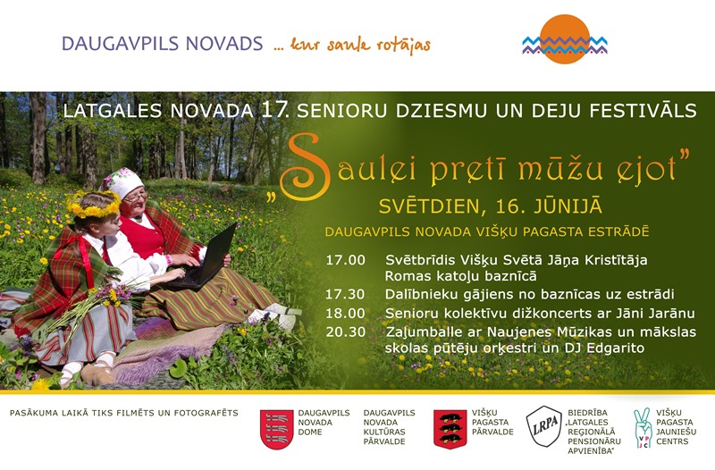 Svētdien, 16. jūnijā, Daugavpils novada Višķu pagasta estrādē notiks Latgales novada 17. Senioru dziesmu un deju festivāls “Saulei pretī mūžu ejot”, kurā piedalīsies Latgales reģionālās pensionāru apvienības, novada pensionāru biedrību, Latgales pašvaldību kultūras iestāžu un citu organizāciju senioru amatiermākslas kolektīvi.