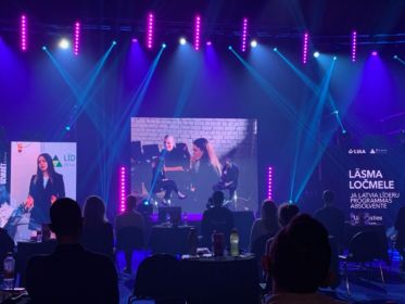 Lāsma Ločmele, kas ir JA Latvia Līderu programmas absolvente, kur pastāstīja par savu pieredzi, saviem plāniem un uzrunāja jauniešus ņemt dalību šajā programmā.