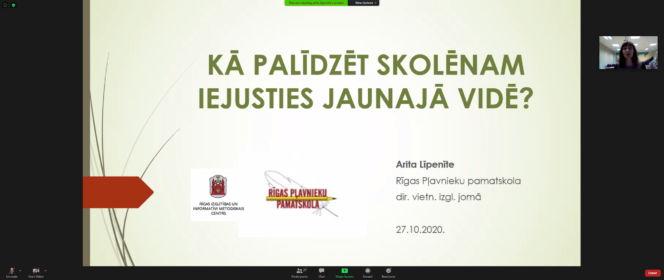 27.oktobrī Rīgas Izglītības un informatīvi metodiskais centrs projekta “Iedot roku” ietvaros rīkoja jau 2. moduli pedagogiem “Kā palīdzēt skolēnam iejusties jaunajā vidē”. Nodarbība notika tiešsaistē, platformā ZOOM, kuras laikā dalībnieki iepazinās ar Rīgas Pļavnieku pamatskolas pieredzi.