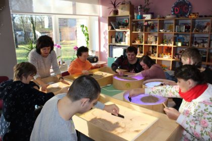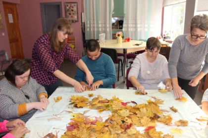 Tomēr gana piepildīts laiks klientiem bijis arī drēgnajos rudens mēnešos, kad aktivitātes notikušas iekštelpās. Visas norises, kas notiek dabā, tiek iedzīvinātas arī nodarbībās, pievēršoties gan konkrētajā brīdī pieejamajiem dabas materiāliem, gan turpinot tradīciju atzīmēt dažādus svētkus. Ar nepacietību tiek gaidīta katra nodarbība – gan darbošanās ar mālu, darinot svečturus, traukus, dekorus, gan darbs ar dažādiem mākslas materiāliem mākslas terapijas nodarbībās, gan inovatīvi risinājumi, kā darboties ar kastaņiem, koku lapām, kaltētiem augiem un smiltīm, ko piedāvā dabas vides estētikas nodarbības, gan izkustēšanās ritmiskos pavadījumos mūzikas nodarbībās. Līdzās tam visam ir ikdienas darbs, ko ar klientiem veic aprūpētājas, galvenokārt darbojoties kulinārajās un radošajās nodarbībās, psihologa un sociālā darbinieka darbs, meklējot katra klienta resursus un iespējas.