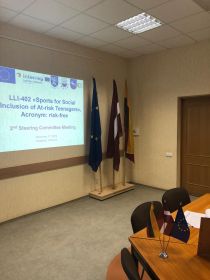 2019.gada 17.decembrī Visaginā norisinājās otrā projekta LLI-402 “Riska grupas jauniešu sociālā integrācija, balstoties uz sporta aktivitātēm” (akronīms: risk-free) uzraudzības grupas tikšanās, kur ar projekta partneriem tika pārrunāta projekta īstenošanas gaita līdz šim, kā arī izrunāti un apstiprināti nepieciešamie grozījumi projekta sekmīgai īstenošanai.