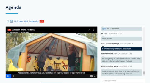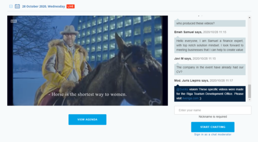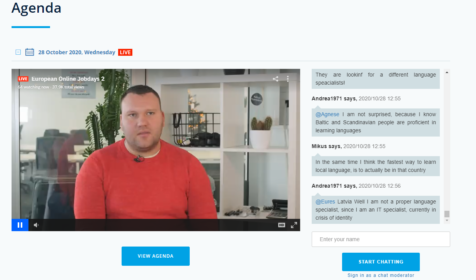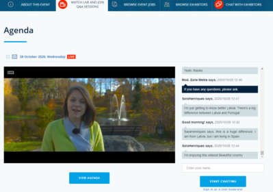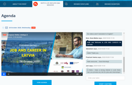 28. oktobrī no plkst.11.00 līdz plkst.15:00 tiešsaistes pasākuma laikā “Darbs un karjera Latvijā” bija iespēja tikties ar Latvijas darba devējiem un pārrunāt darba iespējas informācijas tehnoloģiju un finanšu jomā, noklausīties prezentācijas un saņemt ekspertu konsultācijas par darba un biznesa iespējām Latvijā, darba tiesību, sociālās drošības, nodokļu un citiem jautājumiem.