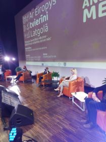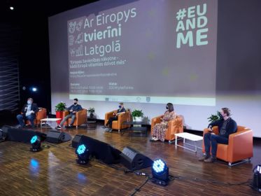 Pasākuma turpinājumā notika paneļdiskusija, kuru vadīja Ansis Bogustovs. Latgalē un visā Latvijā atpazīstami eksperti kā Latvijas Jaunatnes padomes prezidente Ilze Bergmane, JSPA Starptautiskās sadarbības un atbalsta daļas vadītājs Nils Mosejonoks, personīgās izaugsmes trenere un līdzdalības eksperte Ieva Johansson, Rugāju novada vidusskolas 12. klases skolēns Elgars Adelčs, jauniešu biedrības “LgSC” vadītāja Edīte Husare un Daugavpils pilsētas domes Kultūras pārvaldes vecākā kultūras pasākumu organizatore Diāna Soldāne izrunāja dažādus jautājumus par Eiropas Savienības attīstību un perspektīvām, dažādiem atbalsta mehānismiem jauniešiem un par jauniešu redzējumu, kādā Eiropā viņi vēlas dzīvot.