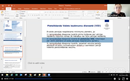 2021. gada 21. aprīlī pulksten 15.00 (pēc Latvijas laika) notika Ārlietu ministrijas un Pasaules Brīvo latviešu apvienības (PBLA) organizētais tiešsaistes seminārs “Diasporai par aktualitātēm Latvijā”. Otrais seminārs trīs semināru ciklā bija par ārzemēs nopelnīto pensiju saņemšanu Latvijā, kā arī par eParaksta un eID iegūšanu un lietošanu.