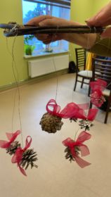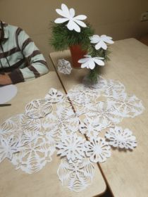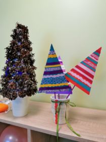 Radošajās darbnīcās izgatavojām noformēšanas elementus telpu dekorēšanai, eglīšu rotājumus, kurus izmantosim kopīgai eglītes rotāšanai.
