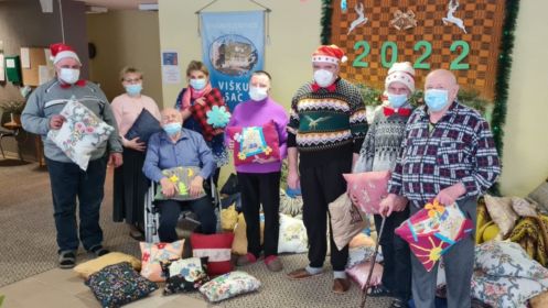 Daugavpils novada Sociālā dienesta Dienas aprūpes centrā Višķos klienti par dāvanām domājuši jau sen. Jau no vasaras mēnešiem kopīgi viņi veltījuši laiku tam, lai sašūtu spilvenus Višķu Sociālās aprūpes centra klientiem – gados vecākiem cilvēkiem.