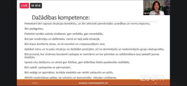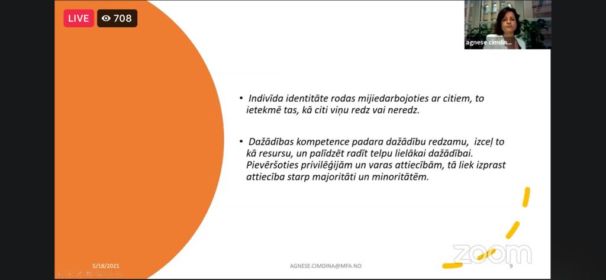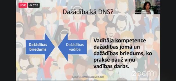 2021.gada 18.maijā notikušajā sarunu skolas LAMPA nodarbībā tika runāts par dažādību – kas tas ir, un kā to vadīt. Nodarbību vadīja Agnese Cimdina, Phd, padomniece Norvēģijas karalistes vēstniecībā Rīgā, sociālantropoloģe, sertificēta dažādības vadības eksperte un autore. Sarunu skola LAMPA ir praktisku nodarbību cikls, kuru laikā ikviens var gūt praktiskas iemaņas labākai saskarsmei ar līdzcilvēkiem.