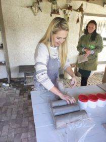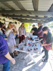 Tālākos pasākuma iedvesmotājas grožus pārņēma smaidīgā Kristīne Nicmane – neparasti skaistā un mūsdienīgā “Jašas podu” zīmola izveidotāja. Kristīne dalījās atmiņās par laiku, kad tika pieņemts lēmums pārcelties uz Preiļu novada Aizkalni, netālu no Jašas upes radot savas dzīves lielāko aizraušanos – “Jašas podus”. Kristīnes virsvadībā pasākuma apmeklētājiem bija unikāla iespēja radīt savu “mākslas darbu”: akmens masas tējas svecītes trauciņu ķirbīša formā! Meistarklases laikā atklājās, ka ne vienam vien apmeklētājam ir dabas dots podnieka talants!