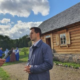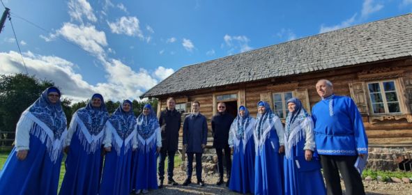 Vēlāk delegācija devās uz Slutišķu muzeju, kur to ar dziedājumiem sagaidīja Naujenes kultūras centra slāvu tradīciju ansamblis “Radenije”. Naujenes novadpētniecības muzeja speciāliste Ludmila Pimenova augstos viesus iepazīstināja ar vecticībnieku kultūru un tradīcijām.