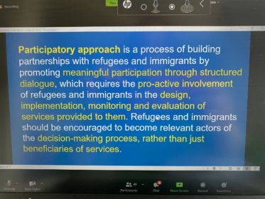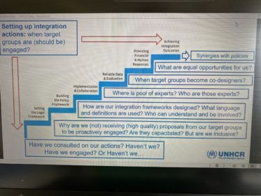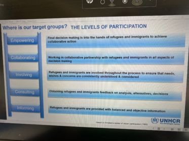 Tikšanos ievadīja ANO Augstā komisāra bēgļu jautājumos biroja pārstāvis Karolis Zibas, klātesošos iepazīstinot ar prezentāciju par imigrantu un bēgļu līdzdalības galvenajiem principiem un pieejām.