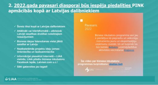 2021.gada 3.decembrī notika Latvijas investīciju un attīstības aģentūras (LIAA) organizētais Diasporas PINK programmas noslēguma pasākums tiešsaistē.