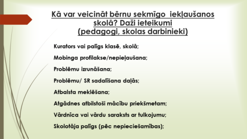 Latgales plānošanas reģiona remigrācijas koodrinatore Astrīda Leščinska ir secinājusi, ka plānojot savu pārcelšanos uz dzimteni, ģimenes parasti uztrauc dažādi jautājumi, tostarp bērnu sekmīga iekļaušanās izglītības iestādē. Vecāki baidās, kā viņu atvase iejutīsies klasē, kā viņš apgūs mācību programmu, kā veiksies ar latviešu valodu, kādas būs atzīmes, vai tās strauji neslīdēs lejup, vai bērns tiks iekārtots klasē atbilstoši savam vecumam utt. Tāpat arī izglītības iestādēm ir daudz jautājumu un izaicinājumu darbā ar remigrantu bērniem, tāpēc par šo tēmu tika nolemts rīkot apmācības dažādu jomu speciālistiem gan no izglītības iestādēm, gan no pašvaldības un privātajām iestādēm, kā arī viena no mērķa grupām bija remigrantu bērnu vecāki.
