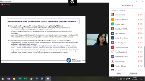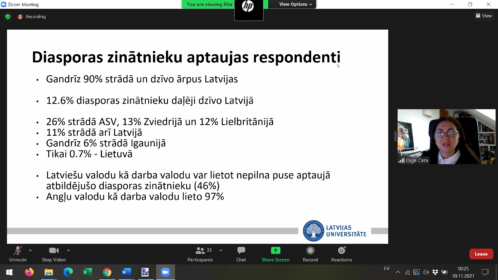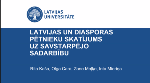 Tiešsaistes pasākumā “Sadarbība pētniecībā ar diasporu: vai protam, vai gribam, vai spējam?”, kas notiks 2021. gada 10. novembrī no plkst. 10.00 – 11.30 notika , tika prezentēts pētījuma “SADARBĪBA IZCILĪBAI: Latvijas un diasporas pētnieku skatījums uz savstarpējo sadarbību” rezultāti. Pasākumu organizēja Izglītības un zinātnes ministrija (IZM) sadarbībā ar Latvijas Universitātes Diasporas un migrācijas pētījumu centru (LUDMPC).