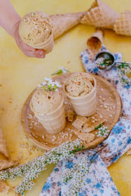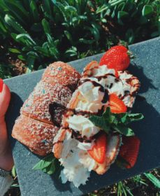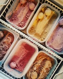 Dabīgi daudzkrāsaini un daudzgaršīgi mājas saldējumi no īsta piena un produktiem, kas ievākti Dvietes pagastā, burbuļvafeles, saldās un sāļās franču pankūkas, sāļā tarte un kafija.