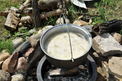 Grauzdiņi. Uz ugunskura vārīta tēja, smalkmaizītes.