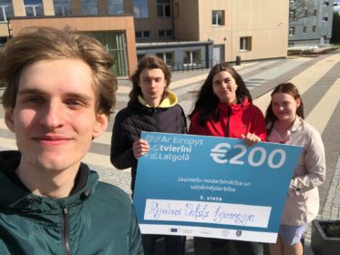 Aprīļa beigās tika aizvadīts trešā pasākumu cikla “Ar Eiropys tvierīni Latgolā” aktivitāte, kurā 18 jauniešu komandas no Daugavpils Vienības pamatskolas, Daugavpils 10. vidusskolas, Rugāju novada vidusskolas, Daugavpils Tehnoloģiju vidusskolas-liceja, Balvu profesionālās un vispārizglītojošās vidusskolas, Daugavpils 3. vidusskolas, Daugavpils Valsts ģimnāzijas, Malnavas Koledžas, Ludzas pilsētas ģimnāzijas, Daugavpils Centra vidusskolas, Rēzeknes Valsts 1. ģimnāzijas, Ludzas BJC, Rēzeknes 5. vidusskolas, Riebiņu vidusskolas, Daugavpils Saskaņas pamatskolas un Daugavpils 17.vidusskolas piedalījās diskusijās, apmācībās un ideju ģenerēšanā par jauniešu uzņēmējdarbību un nodarbinātību.