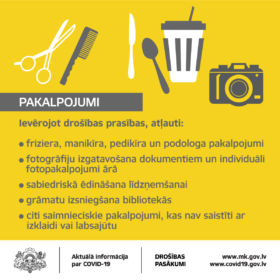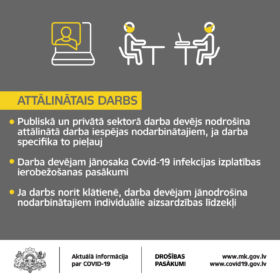 Tā kā Covid-19 pandēmija apdraud ikviena veselību un dzīvību, gan Lieldienās, gan turpmāk ikvienam jāievēro drošas sadzīves pamatprincipi – roku un virsmu dezinfekcija, telpu vēdināšana, fiziska distance no apkārtējiem, kā arī masku lietošana darbā un vietās, kur ir daudz cilvēku. Tāpat jācenšas izmantot iespējas saņemt pakalpojumus attālināti, iepirkties internetā un izmantot bezskaidras naudas norēķinus.
