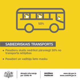 Ņemot vērā, ka Covid-19 izplatība visstraujāk notiek slēgtās telpās, arī pēc Lieldienām jāievēro norādes sabiedriskajā transportā, lai tā piepildījums nepārsniegtu 50%.ieteicams iespēju robežās izvairīties no sabiedriskā transporta lietošanas un izvēlēties alternatīvus pārvietošanās veidus, piemēram, ar kājām vai velosipēdu.
