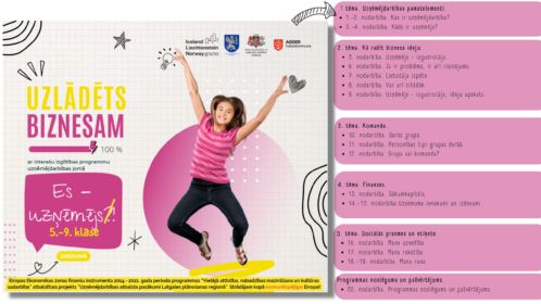 Lai veicinātu nodarbinātību un palielinātu Latgales konkurētspēju, Latgales plānošanas reģions (LPR) izstrādā specifisku risinājumu – jaunas interešu izglītības programmas uzņēmējdarbības jomā. Kopš šī gada marta LPR īstenotā Eiropas Ekonomikas zonas grantu projekta ”Uzņēmējdarbības atbalsta pasākumi Latgales plānošanas reģionā” aktivitātes ietvaros tiek izstrādātas 4 atsevišķas, savstarpēji papildinošas interešu izglītības programmas. Tās paredzētas dažādiem vecumposmiem – pirmsskolas vecuma bērniem, 1.- 4. klases vecuma bērniem, 5.- 9. klases vecuma bērniem un vidusskolas posma jauniešiem.Līdz 2022.gada 25. septembrim izglītotājiem ir iespēja pieteikties programmas aprobācijas apmācībām, kas tiks īstenotas periodā no 2022.gada oktobra līdz decembrim. Kopumā apmācības paredz 16 stundas (gan klātienē, gan attālināti).