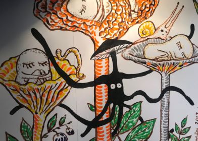 Patiesu scenogrāfijas izpausmi Rotko centra apmeklētāji noteikti izjutīs, iegriežoties izstādē “Micēlija” (jeb “Sēņotne”). Tas ir vēl viens sadarbības un mijiedarbības projekts, kur tandēmos strādā piecas mākslinieces no Vācijas un piecas no Latvijas. Vienā no pāriem ir latviešu māksliniece Guna Millersone: “Man ir ļoti liels prieks par šo sadarbību un to empātiju, kā mēs viena otru ar Sabīni Šlunku jūtam. Tā mums abām ir daba, ļoti dažāda. Man ir mūsu krūmi, meži, purvi, un viņa pieskaņojās. Mēs kādu laiciņu sarakstījāmies. Es stāstīju par savu bērnību, cik man tas svarīgi, jo mani vecāki ir no dziļiem mežiem, un tie pirmie bērnības iespaidi, skaņas, smaržas… Sabīne apbrīnojami labi to uztvēra.