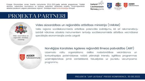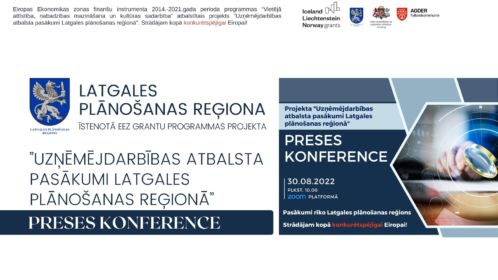 2022. gada 30. augustā notika Latgales Plānošanas reģiona (LPR) Eiropas Ekonomikas zonas finanšu instrumenta 2014.-2021.gada perioda programmas “Vietējā attīstība, nabadzības mazināšana un kultūras sadarbība” atbalstītā projekta ”Uzņēmējdarbības atbalsta pasākumi Latgales plānošanas reģionā” preses konference.