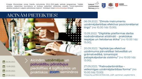 Plašāka informācija par Eiropas Ekonomikas zonas finanšu instrumenta 2014.-2021.gada perioda programmas “Vietējā attīstība, nabadzības mazināšana un kultūras sadarbība” atbalstīto projekta ”Uzņēmējdarbības atbalsta pasākumi Latgales plānošanas reģionā” pieejama: lpr.gov.lv/lv/regionalie_projekti/uap-latgale/#.YV4cFppBxPY